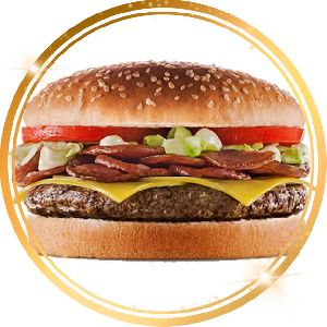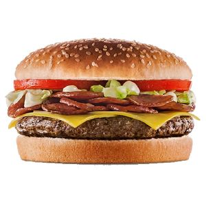 PÃO, HAMBÚGUER, QUEIJO, PRESUNTO, BACON, TOMATE, ALFACE.