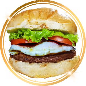 PÃO, HAMBÚRGUER ARTESANAL, QUEIJO, PRESUNTO, OVO, TOMATE, ALFACE.